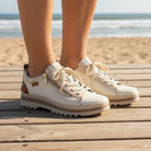 * Genuine Leather Upper: Crafted from 100% calfskin leather, these women’s white trainers offer durability, softness, and a polished finish suitable for both casual and smart-casual wear