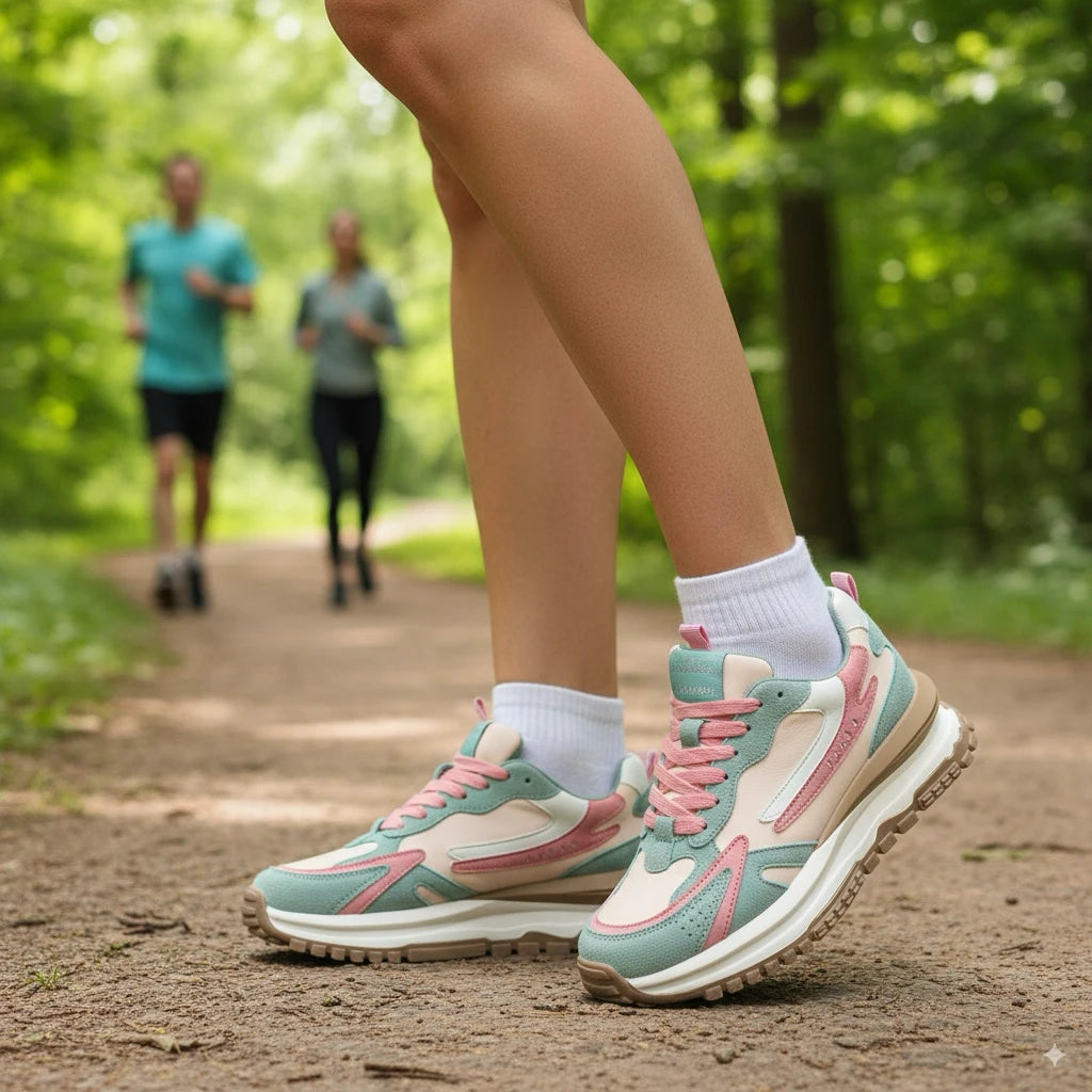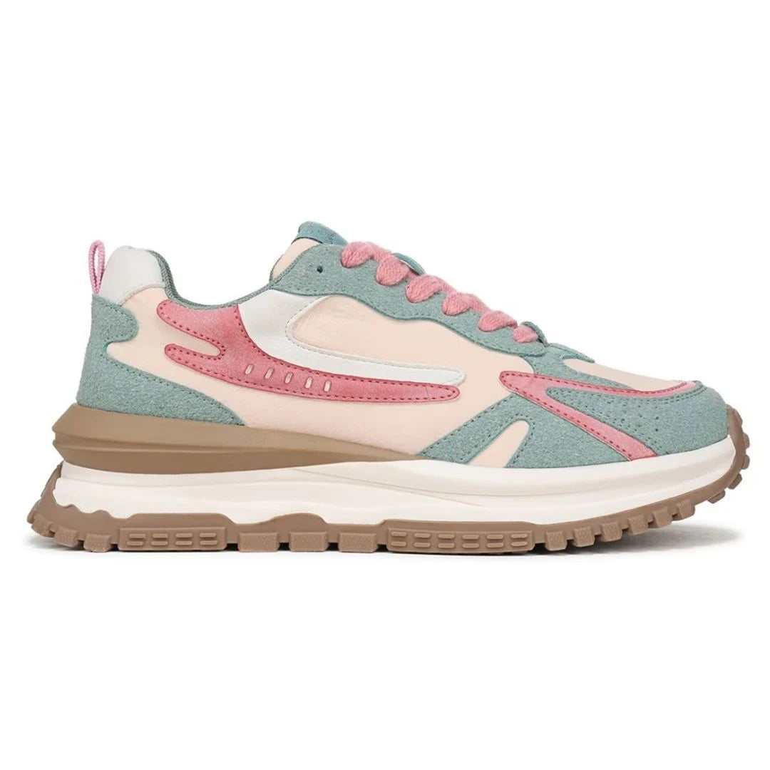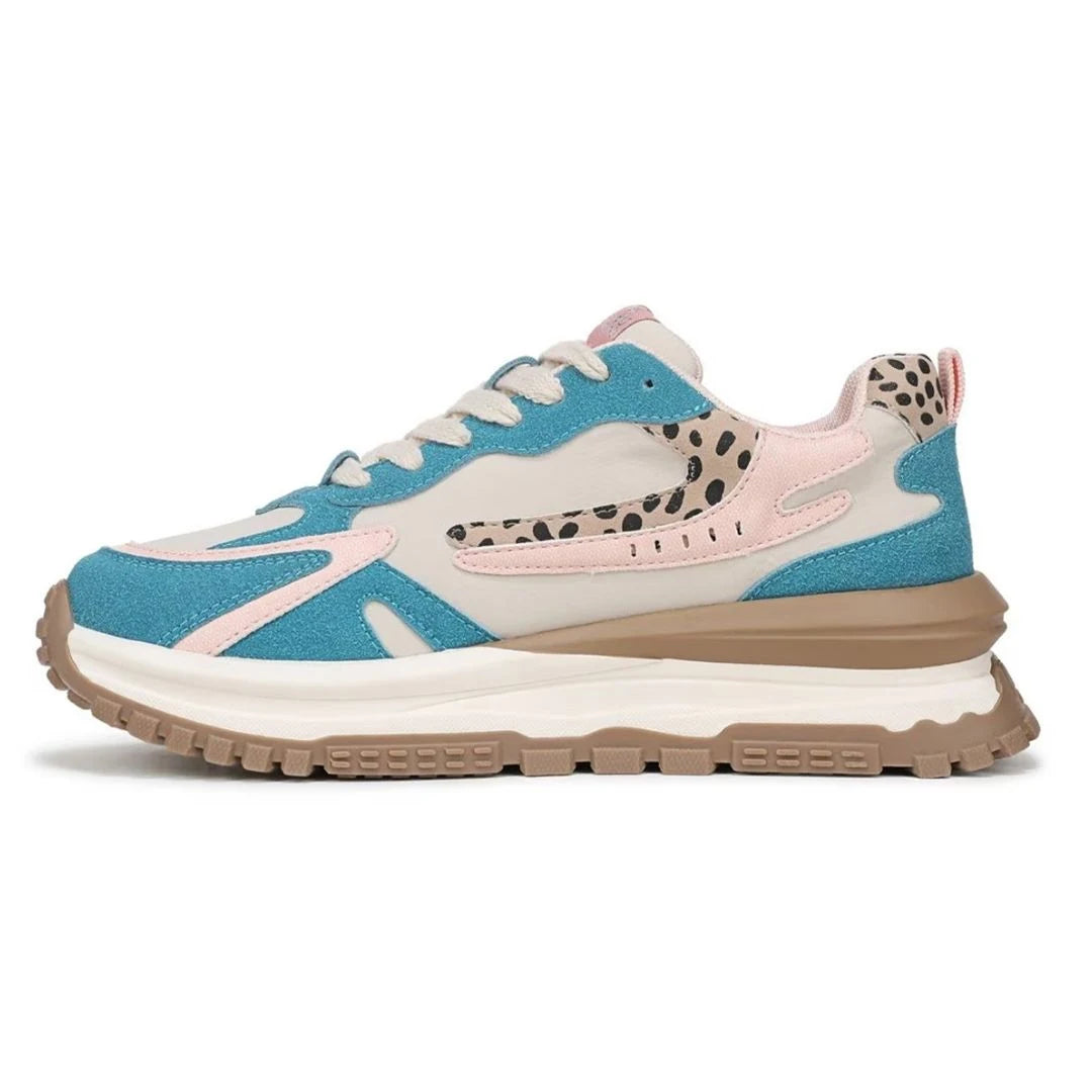 Leo - Women's Pink Blue Retro Lace-Up Sneakers