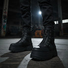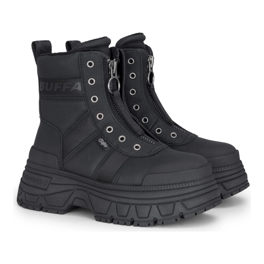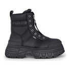 FUSION FRONT ZIP - Damen Schwarze Front-Reißverschluss Plateau-Stiefel