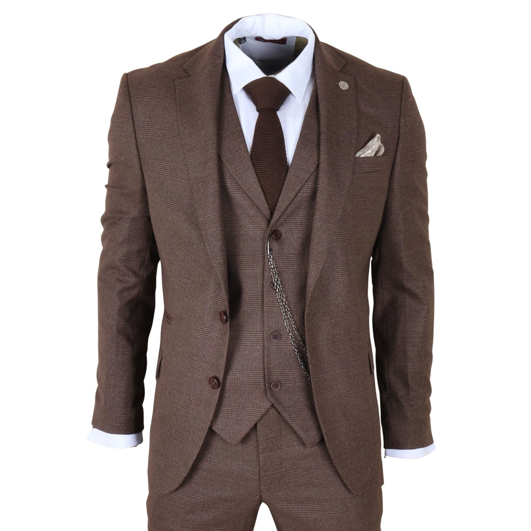 TP-50 - Men's Brown 3 Piece Prince Of Wales Check Suit