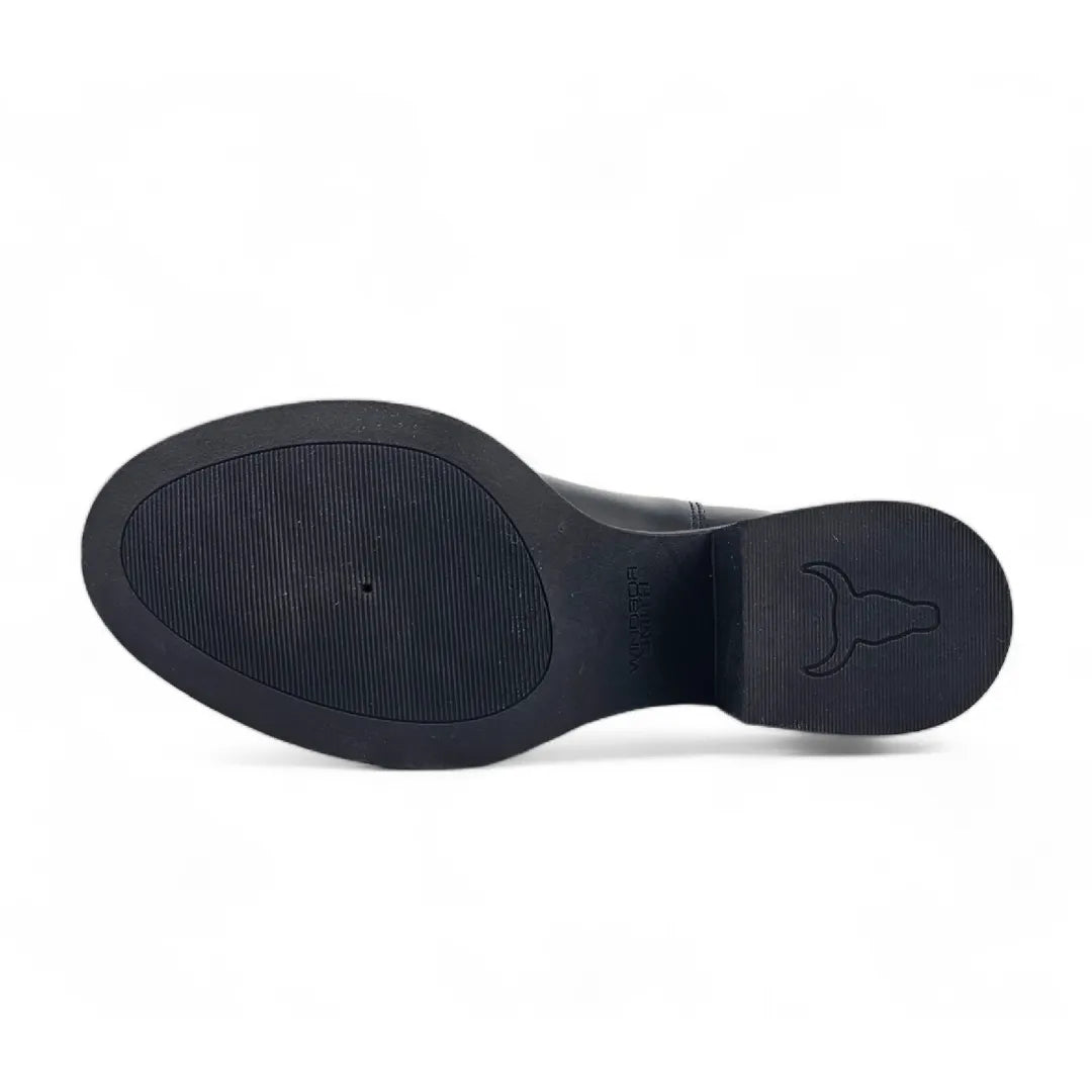 Llanes - Damen Schwarze Leder Combat Stiefeletten mit mittelhohem Absatz