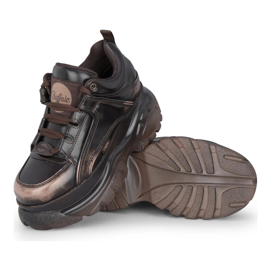 A lo largo de los años, Buffalo se ha mantenido fiel a sus raíces mientras continúa evolucionando. Los famosos zapatos con plataforma de la marca aún conservan el mismo espíritu rebelde que los convirtió en un fenómeno global, pero ahora cuentan con construcciones más ligeras y materiales actualizados que los hacen perfectos para el uso diario.