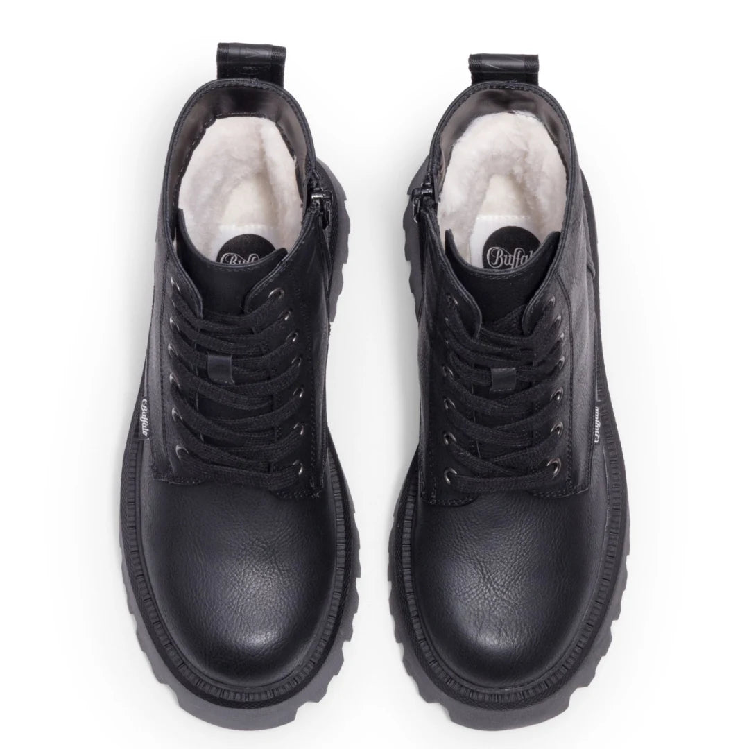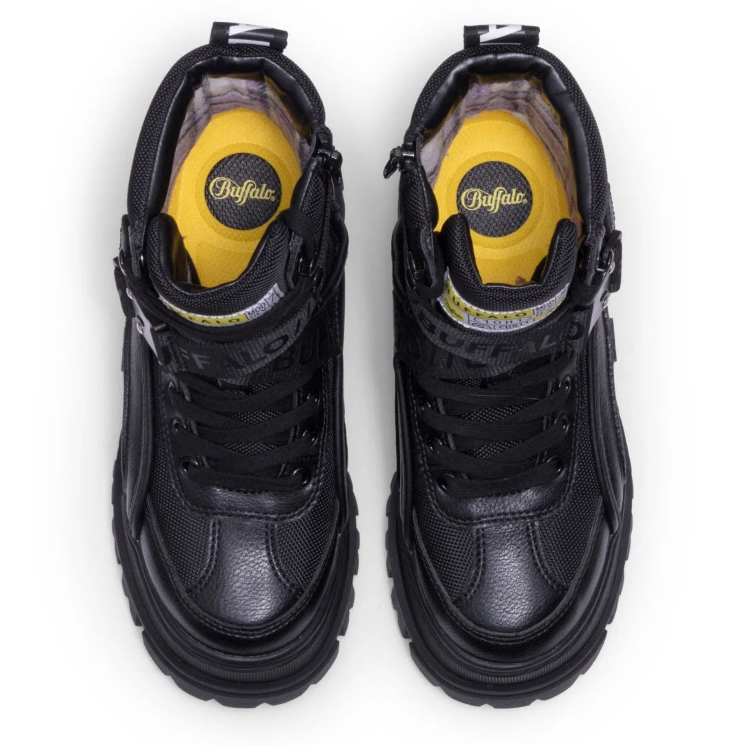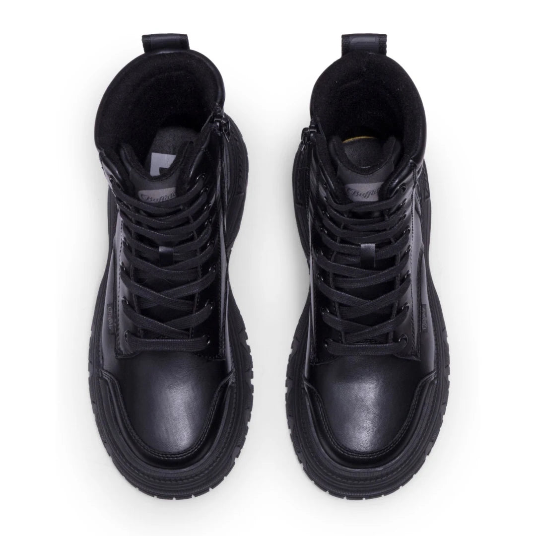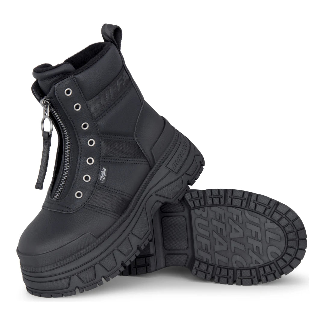 Notre gamme comprend tous les styles de bottes Buffalo les plus populaires. La botte Gospher Zip offre un look audacieux et structuré avec une plateforme épaisse et une tige lisse. La Gospher Biker Hi présente un design plus robuste avec un profil plus haut et une semelle crantée qui donne plus de présence. La Fusion Lace Up combine la plateforme classique Buffalo avec une praticité quotidienne, tandis que la Fusion Front Zip offre une finition plus épurée pour ceux qui préfèrent une touche minimaliste. La collection Aspen apporte un look street décontracté à la silhouette plateforme, en faisant l'une des options les plus polyvalentes de la gamme.