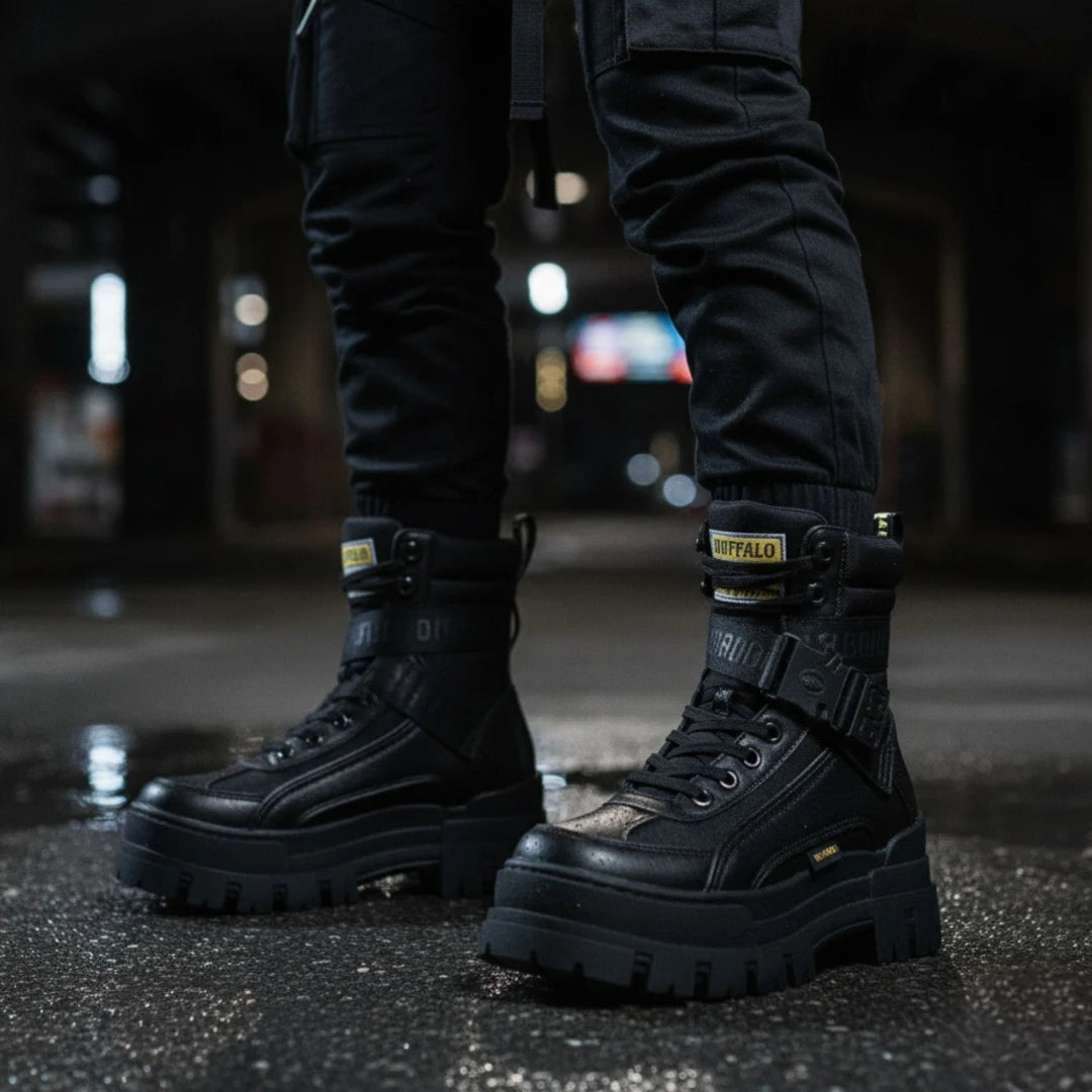 Chacun de ces modèles porte l'attitude et la puissance qui définissent la marque de chaussures Buffalo. Ils s'accordent parfaitement avec des manteaux longs, des tenues superposées et des vêtements de rue alternatifs, ajoutant hauteur, structure et personnalité à n'importe quel look.