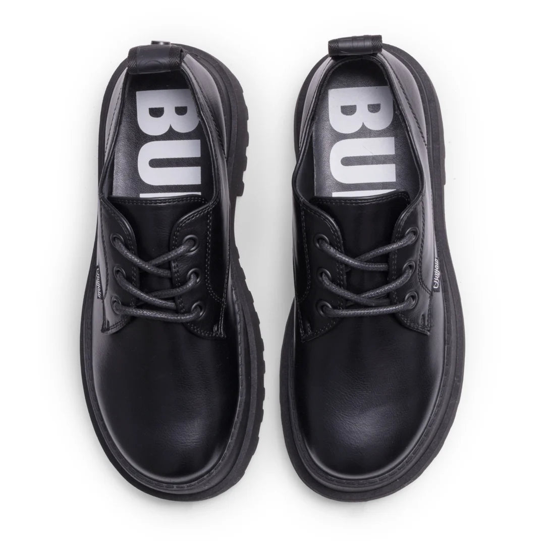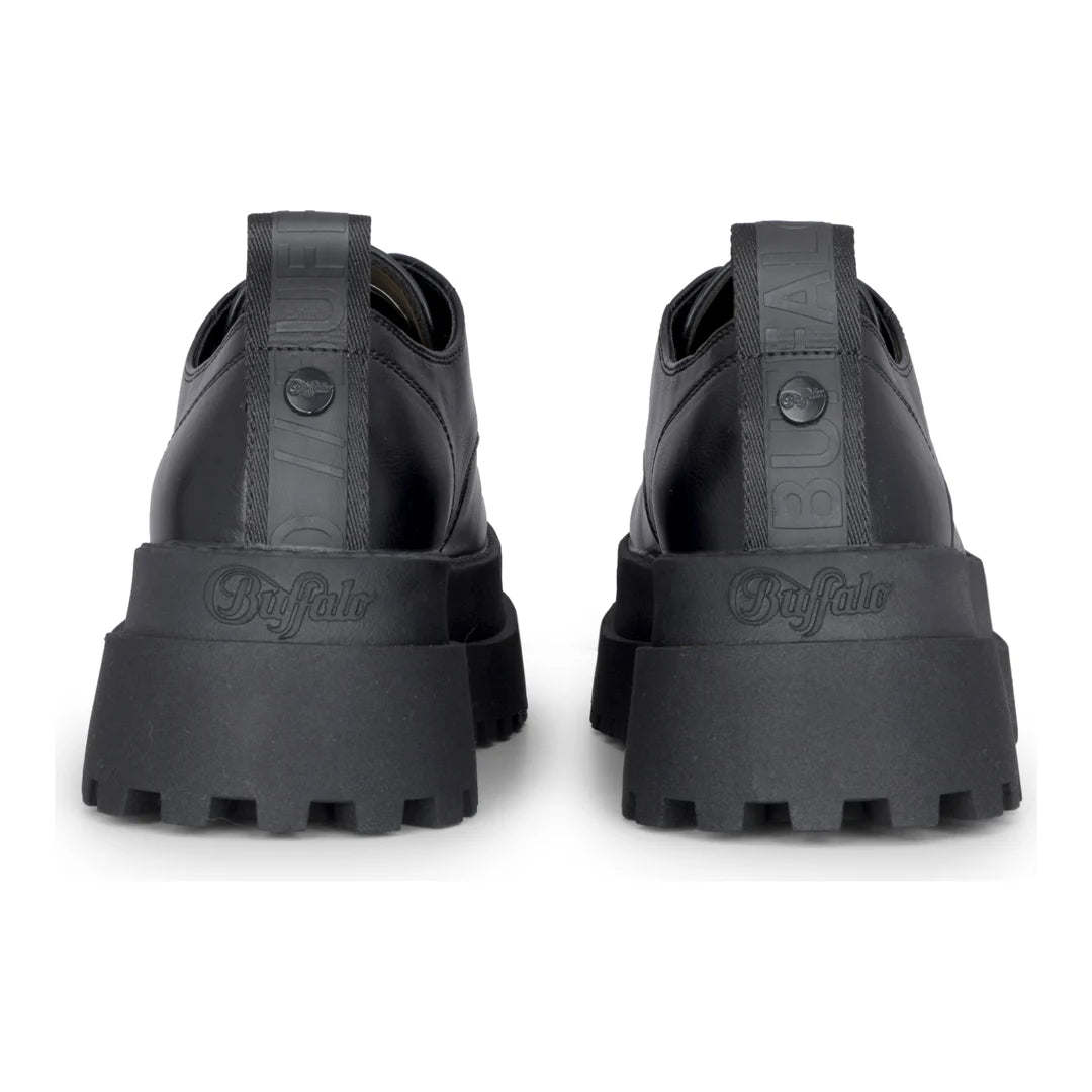 Les chaussures derby à plateforme pour femmes PLUTO LACE UP de Buffalo associent un élégant nappa végan noir à une semelle plateforme épaisse pour une option audacieuse et sans cruauté. Le design classique à lacets assure un ajustement sécurisé, tandis que la profonde semelle à crampons offre une adhérence fiable et une durabilité longue durée. Ces chaussures allient style urbain et confort pratique, en faisant un choix idéal pour un port quotidien confiant et durable.
