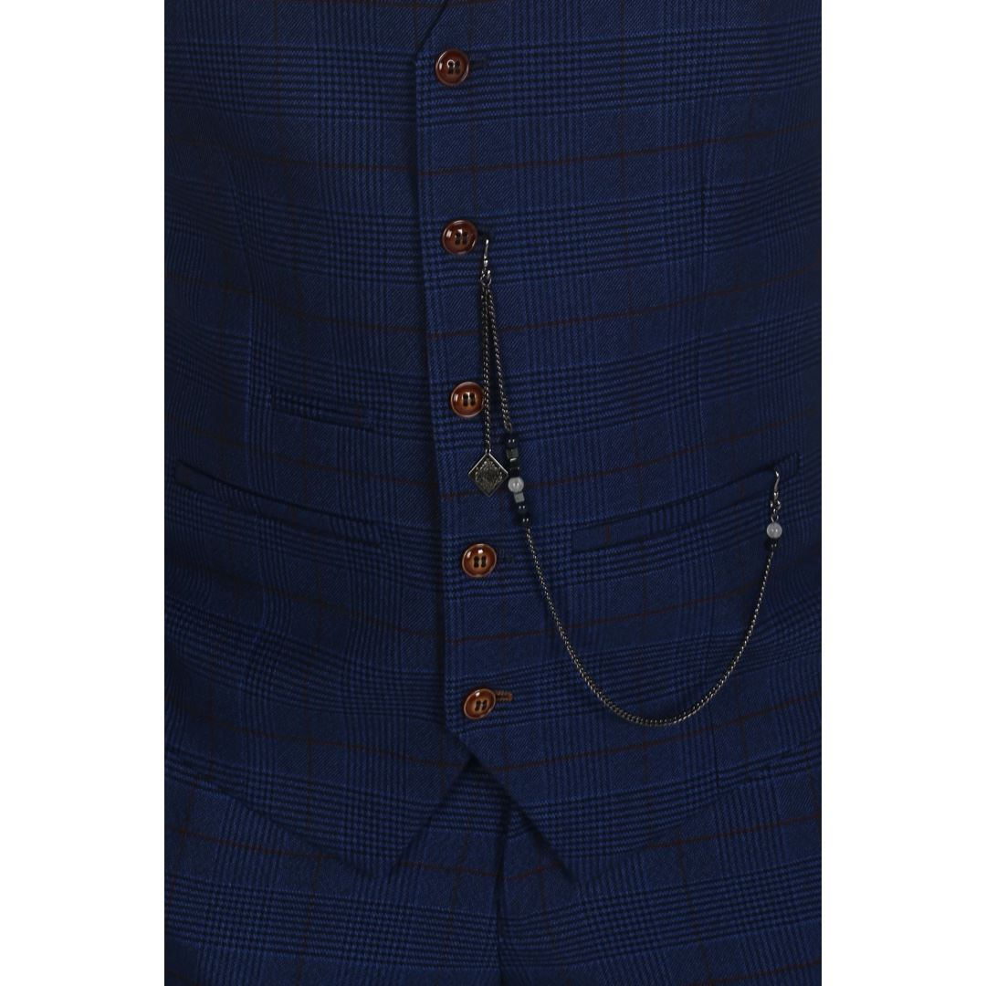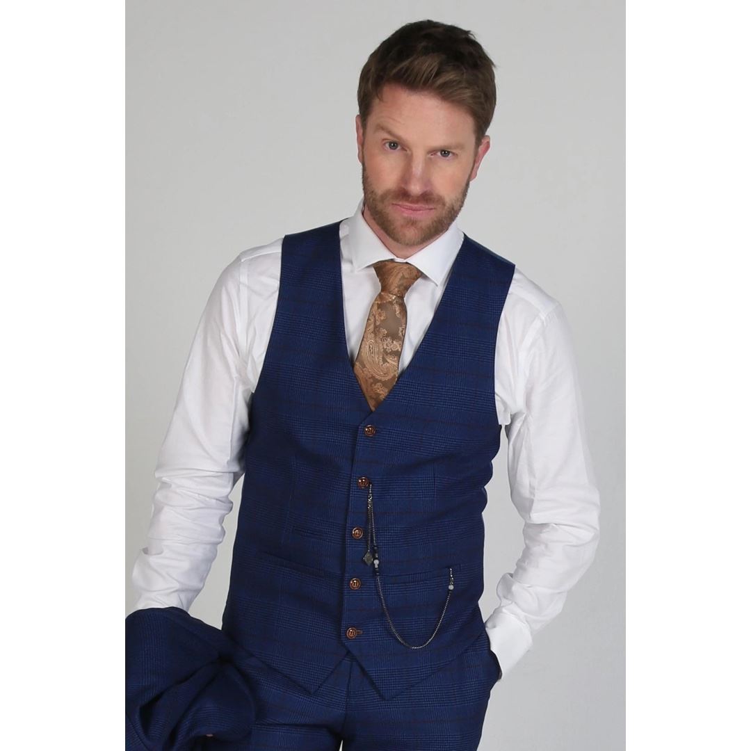Si nous devons établir une règle pour la couleur du gilet en tweed pour hommes, je vous conseillerais de le choisir dans une couleur plusieurs tons plus claire que le costume. Par exemple, un costume bleu marine avec un gilet en tweed bleu clair ou un costume noir avec un gilet en tweed gris.