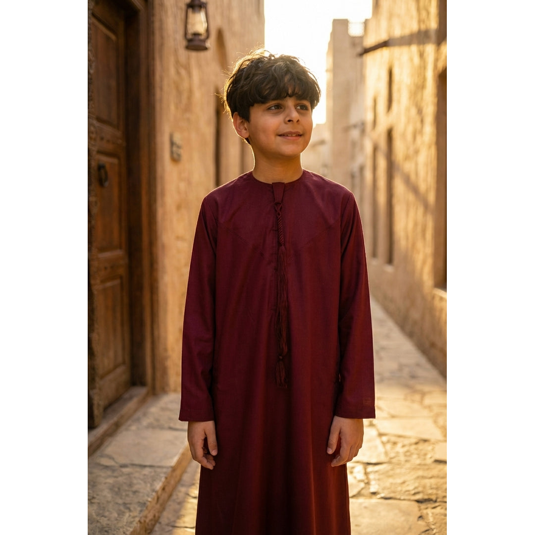 Thobe pour enfant tunique des Emirats Oman Jubba tenue musulmane Kaftan Eid avec pampille