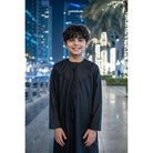 * Tissu haut de gamme : Fabriqué à partir de matériaux de grande qualité, ce thobe est à la fois confortable et durable. Le tissu est soigneusement sélectionné pour sa douceur sur la peau, ce qui permet aux enfants de le porter lors d'occasions festives. Le tissu respirant est également adapté à diverses conditions météorologiques.