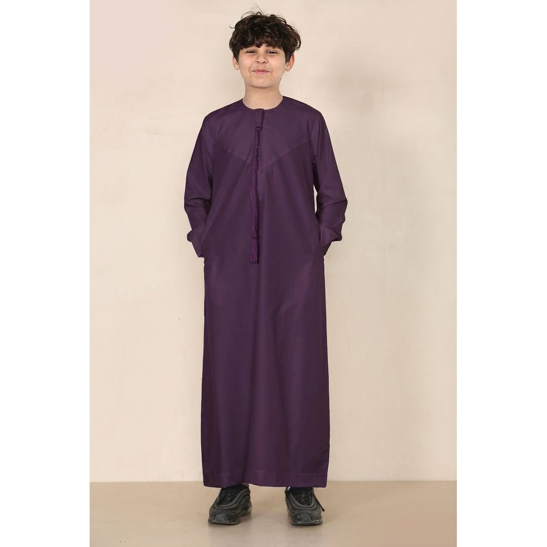 Thobe pour enfant tunique des Emirats Oman Jubba tenue musulmane Kaftan Eid avec pampille