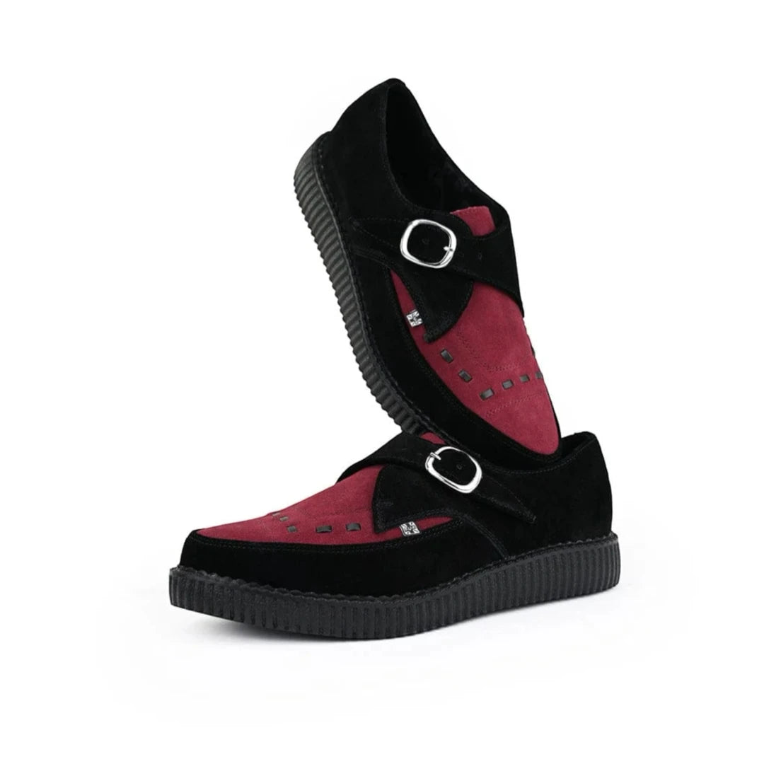 Pointed Creeper Black Burgundy Suede Monk Platform Shoes