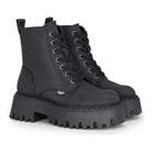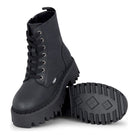 Gli stivali da combattimento alla caviglia ASPEN LACE UP WARM combinano stile e funzionalità con il loro materiale in nappa vegana nera e l'aspetto in pelle nabuk. La fodera isolante garantisce calore in condizioni di freddo, mentre il design regolabile con lacci offre una calzata sicura e su misura. Una suola platform sostanziosa non solo ammortizza ogni passo ma aggiunge anche un tocco moderno. La suola esterna TPR resistente a tutte le intemperie offre una trazione affidabile su terreni diversi, rendendo questi stivali ideali per l'esplorazione urbana o le uscite invernali.