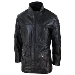 Men's 3/4 Leather Jacket Safari Black Brown Zipped Winter