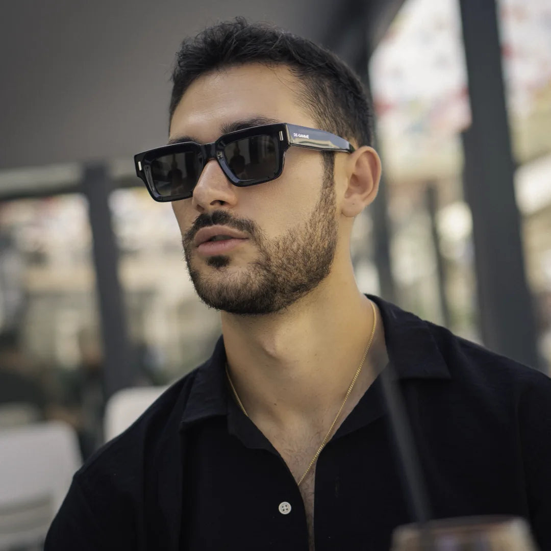 Budapest - Black Rectangle Thick Frame Polarized Sunglasses