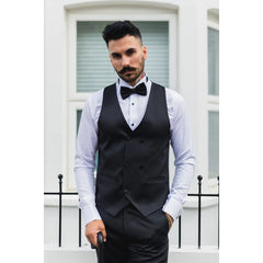 Men's Black Satin Double Breasted Waistcoat Black Tie Dinner Vest