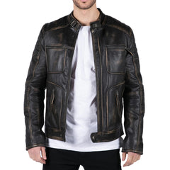 Men's Leather Black Brown Washed Jacket Biker Zipped