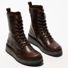 RAMI043FLY - Women's Wedge Heel Lace Up Leather Ankle Boots