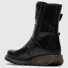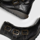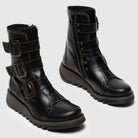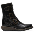 SCOP110FLY - Women's Buckle Strap Leather Biker Ankle Boots